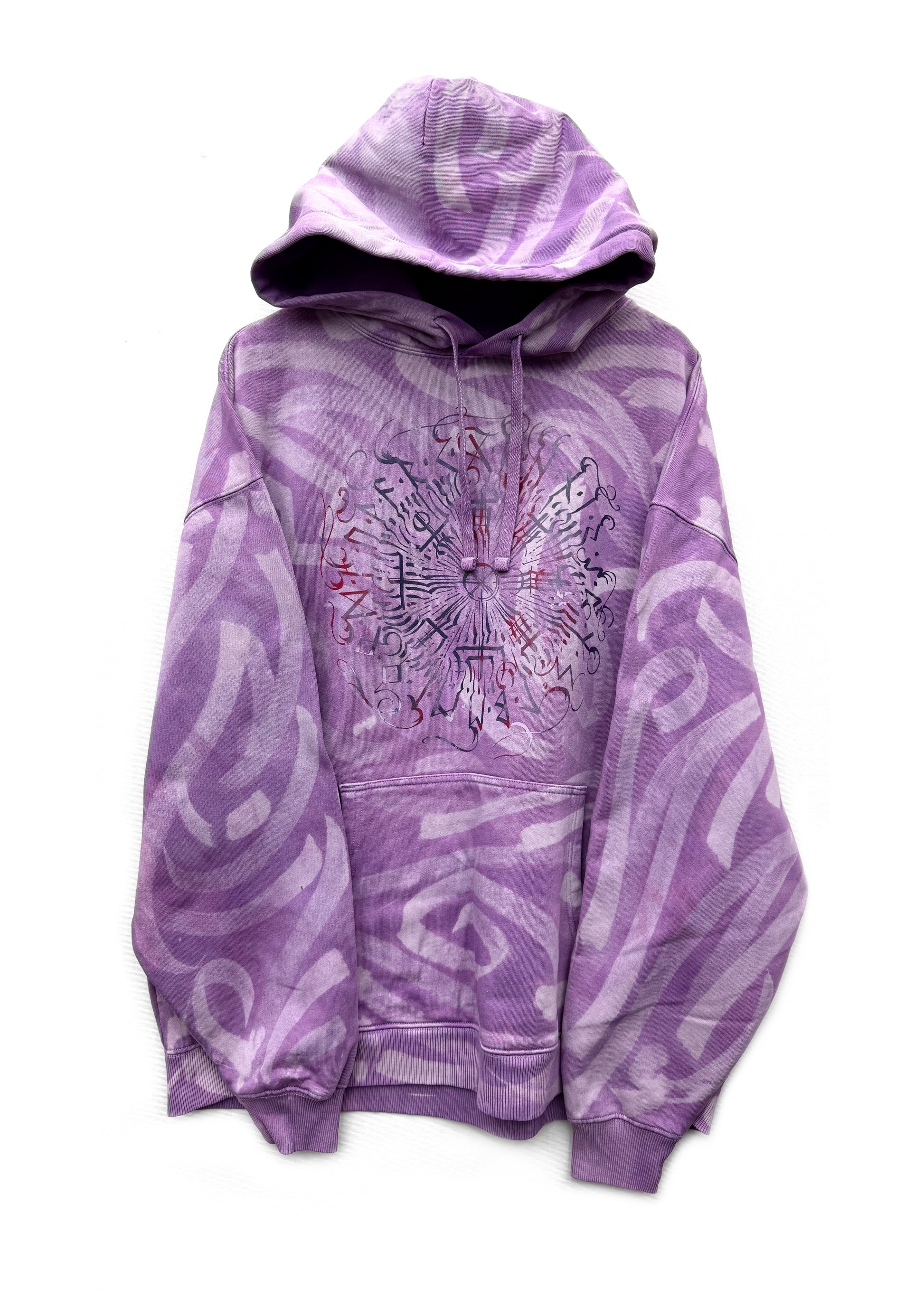 Step into the spirit of adventure with the Berserk Hoodie, handmade piece inspired by ancient Viking runes and calligraphy. Each hoodie tells its own story through hand-bleached lettering, making every one truly one of a kind.